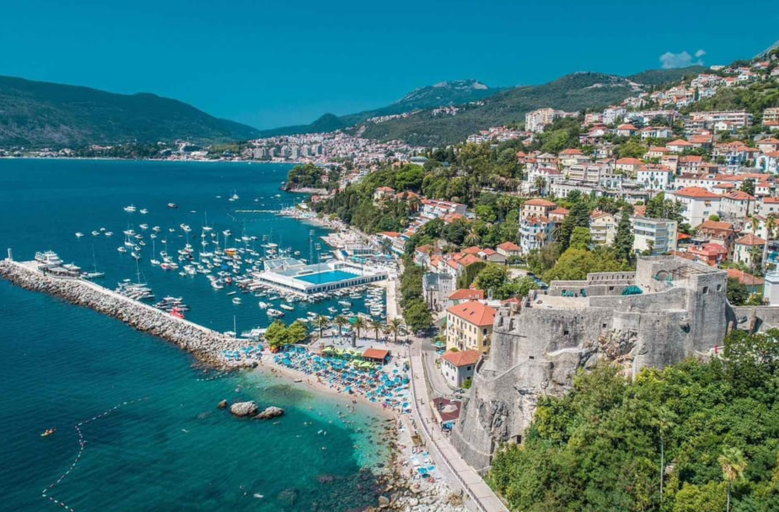 몬테네그로의 최서단에 위치한 에르체그노비(Herceg Novi)는 크로아티아 두브로브니크와 국경을 접한 조용한 해안 도시입니다. 붐비는 관광지 대신, 보다 고요하고 현지인의 일상에 가까운 여행을 원하는 이들에게 이상적인 장소입니다. 도시 중심에는 옛 요새와 성곽, 시계탑이 보존되어 있으며, 해안을 따라 이어지는 산책로는 휴식을 원하는 여행자에게 완벽한 코스를 제공합니다.